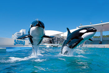 シャチのパフォーマンスが人気の海洋生物を集めたアミューズメントパーク。