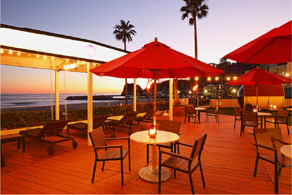 ラウンジから外へ出れば、絶景の海。 波風が心地よく感じられ、赤いパラソルの下でゆったりとお過ごし頂けます。 美しいサンセットを眺めながら、ふたりだけの空間を味わってください。