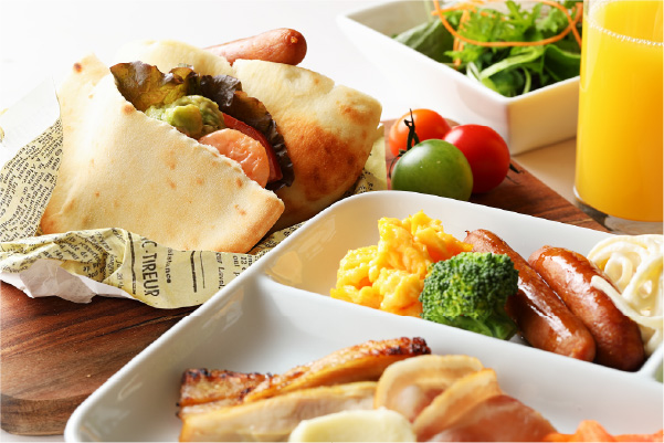 当ホテルで人気の『サンドイッチバイキング』 温暖な季節にテラスで頂く朝食は格別です。 お好きな食材を挟んで作る自家製のサンドイッチ。 サヤンテラスだけのオリジナルバイキングです。